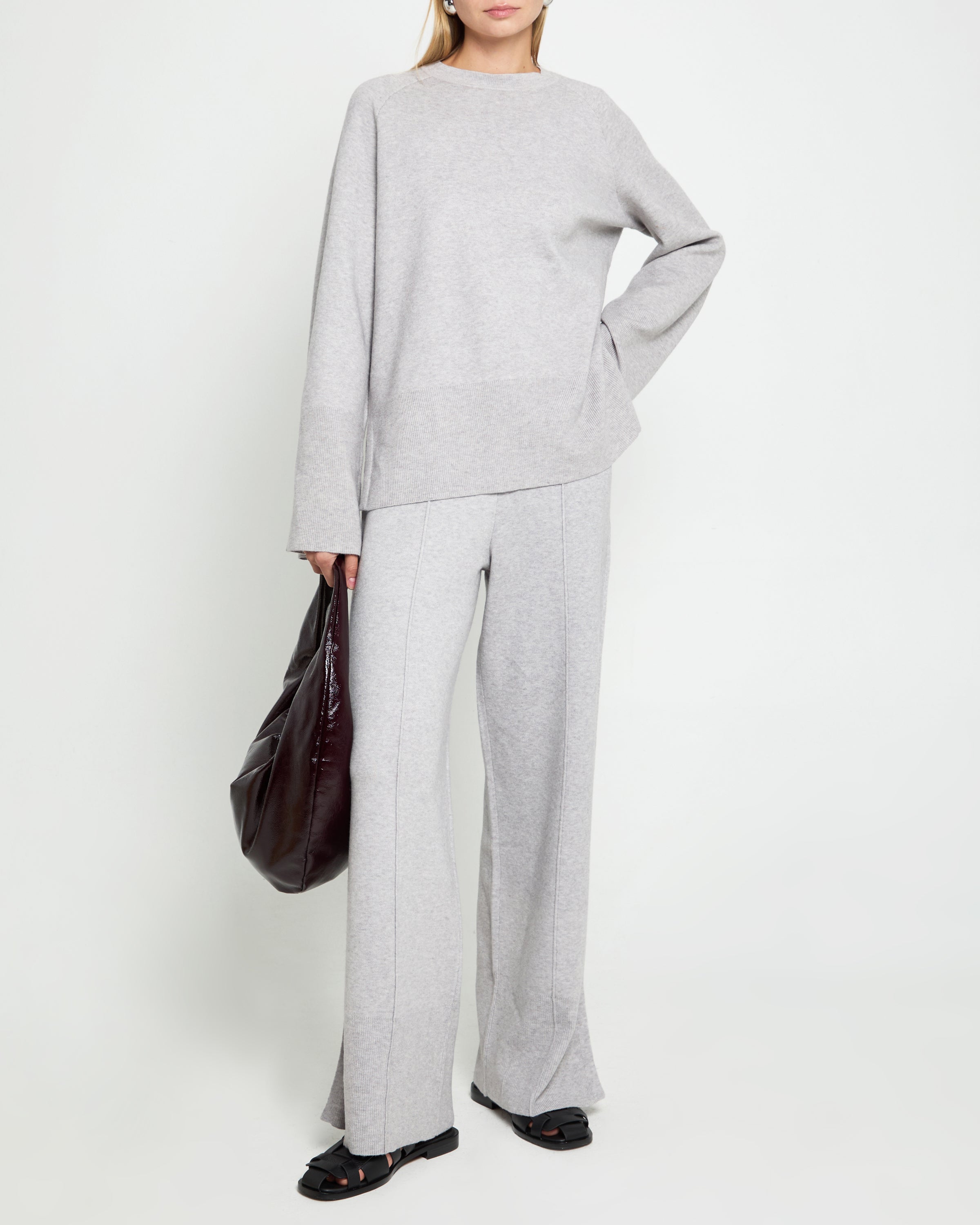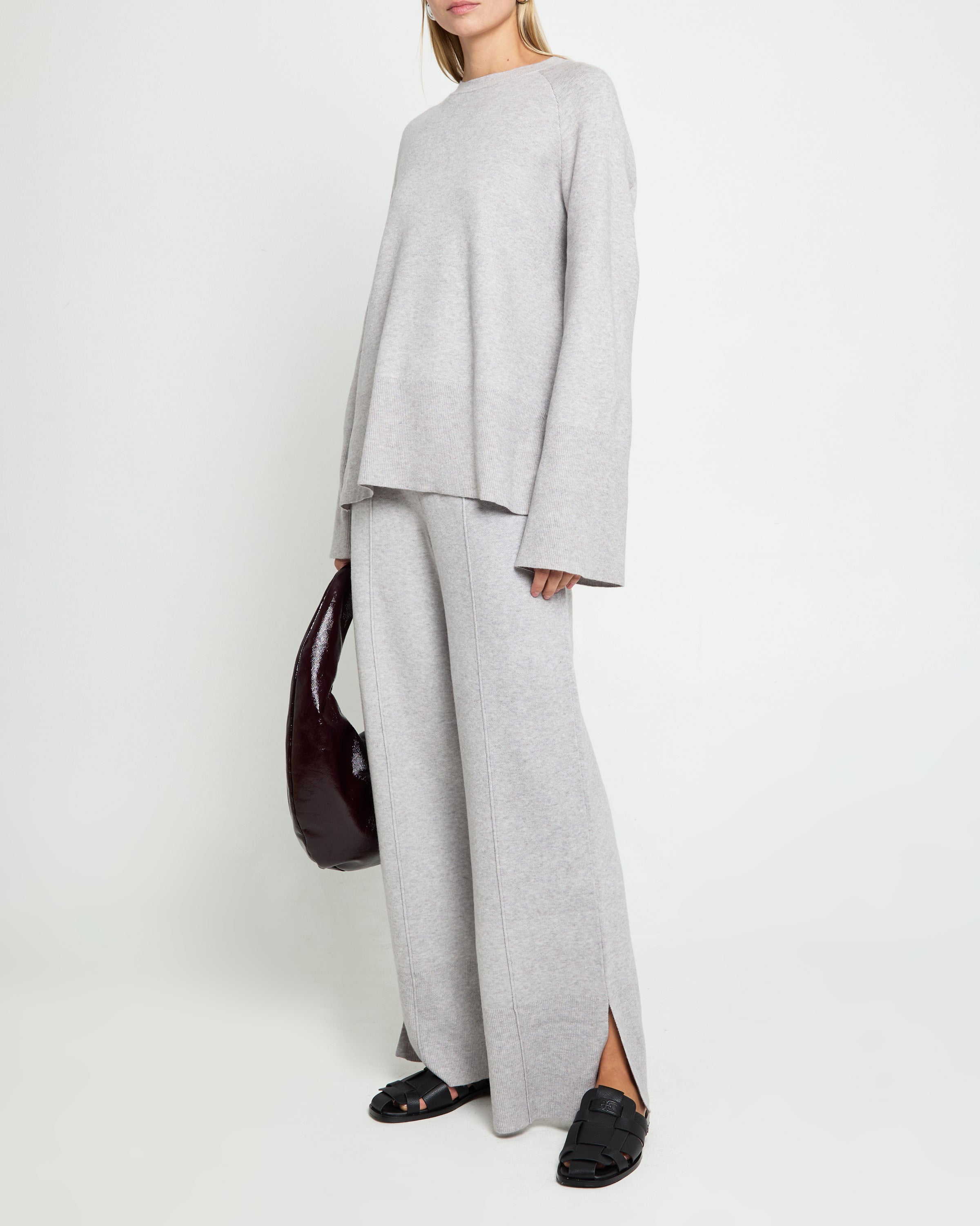 Comfy and cozy. this sweater set has an oversized fit. Finished with slit details at the hems.
